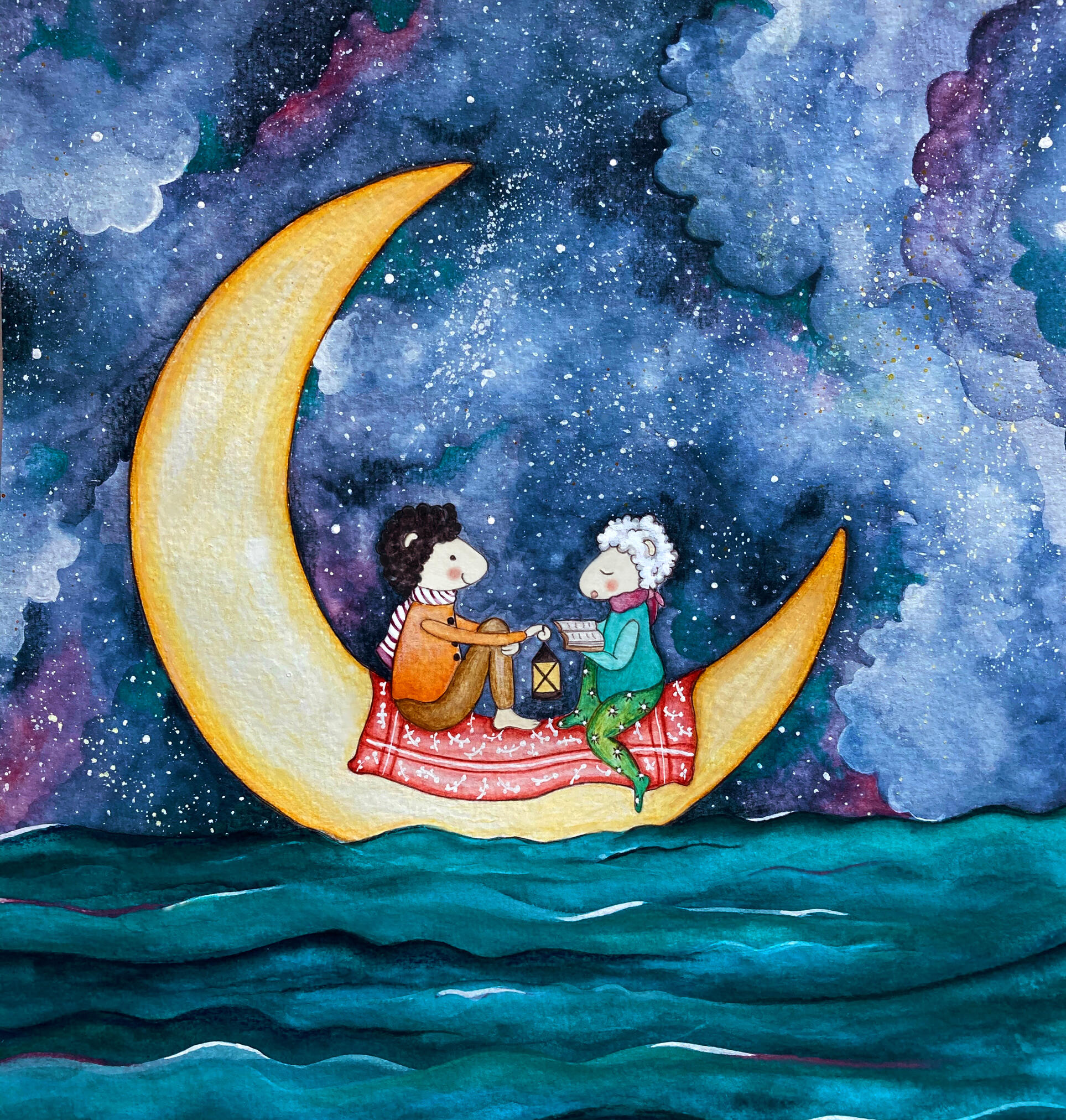 I love sheep. This little corner is all about them leading a simple and joyful life: cooking together, reading poetry, cozying up by the fire, sharing a warm pot of tea on chilly days, and hugging - because there’s no better place than inside a loving hug!You can explore a collection of illustrated products inspired by these sweet animals, bringing their tender way of living into your everyday life - links to the stores hopping online soon!
